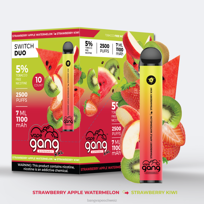 Das Vape Gang Switch Duo verpackt zwei köstliche Geschmacksrichtungen in einem kompakten Einweg-VaporizerGerät.