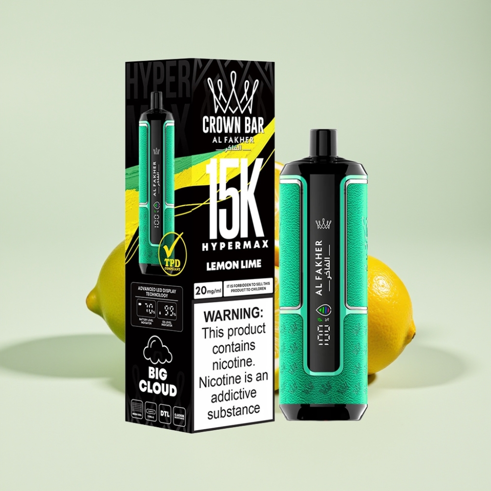 Al Fakher Crown Bar 15K Hypermax Wegwerf-Vape-Kit Zitrone-Limette – 22ml, 600mAh, 15.000 Züge, Schweiz Großhandel