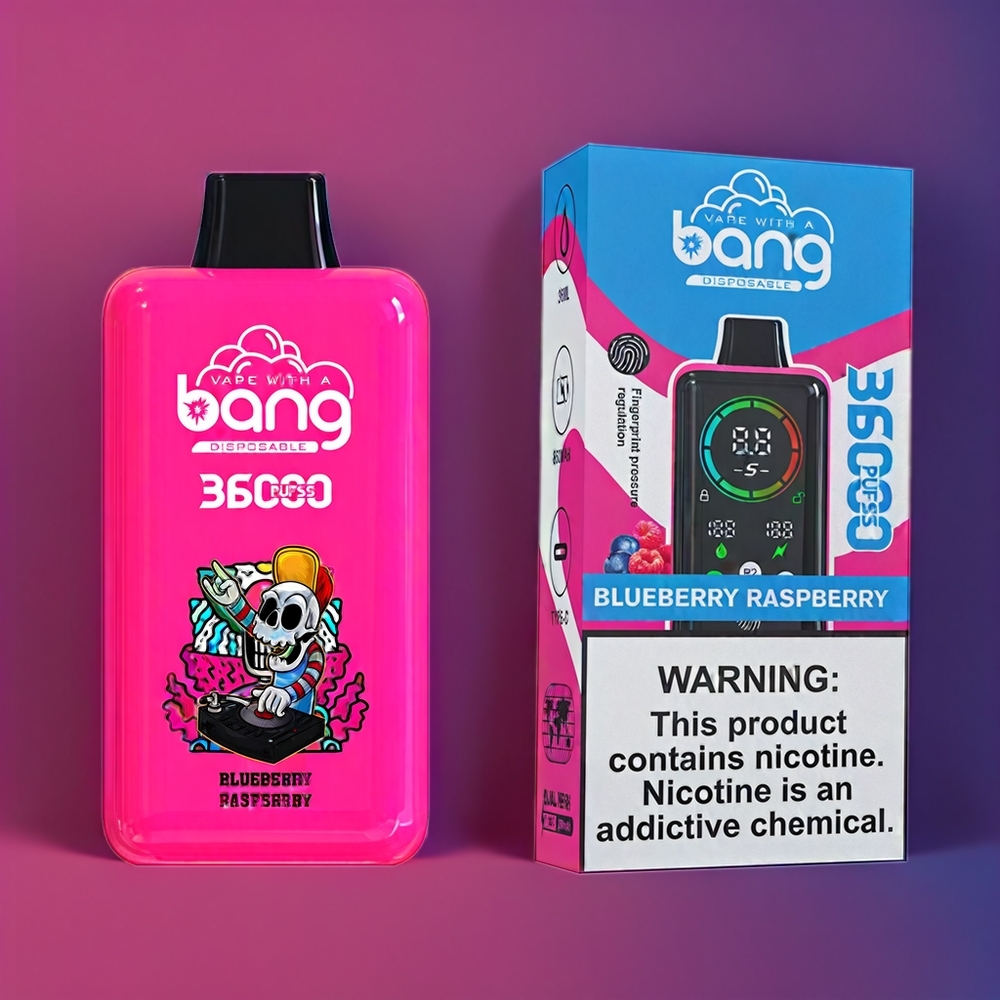 Bang 36000 Power Einweg-Vape Blaubeere Himbeere – Schweiz Großhandel, 36ml, 36000 Züge, 5% Nikotin