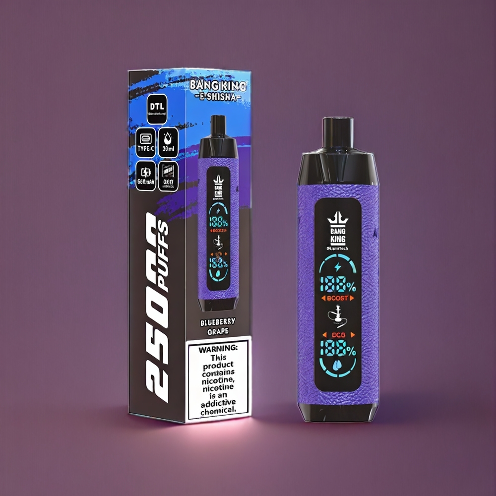 Bang King Shisha 25000 Puffs Einweg-Vape Blaubeere Traube – 30ml E-Liquid, 650 mAh, Mesh Coil 0.6 Ohm, Schweiz Großhandel
