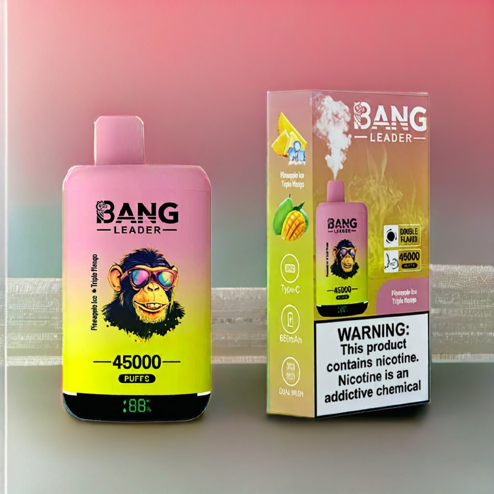 Bang Leader 45000 Puffs Einweg-Vape Pineapple Ice Triple Mango, 0%-5% Nikotin, 45000 Züge, Smart Screen Display, Type-C USB, Dual Geschmack – Schweiz Großhandel