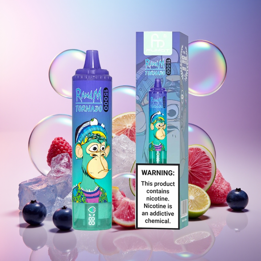 Fumot RandM Tornado 15000 Puffs Einweg-Vape Heidelbeer On Ice mit 25ml Flüssigkeitskapazität, 850mAh Akku, Mesh Coil – Schweiz Großhandel