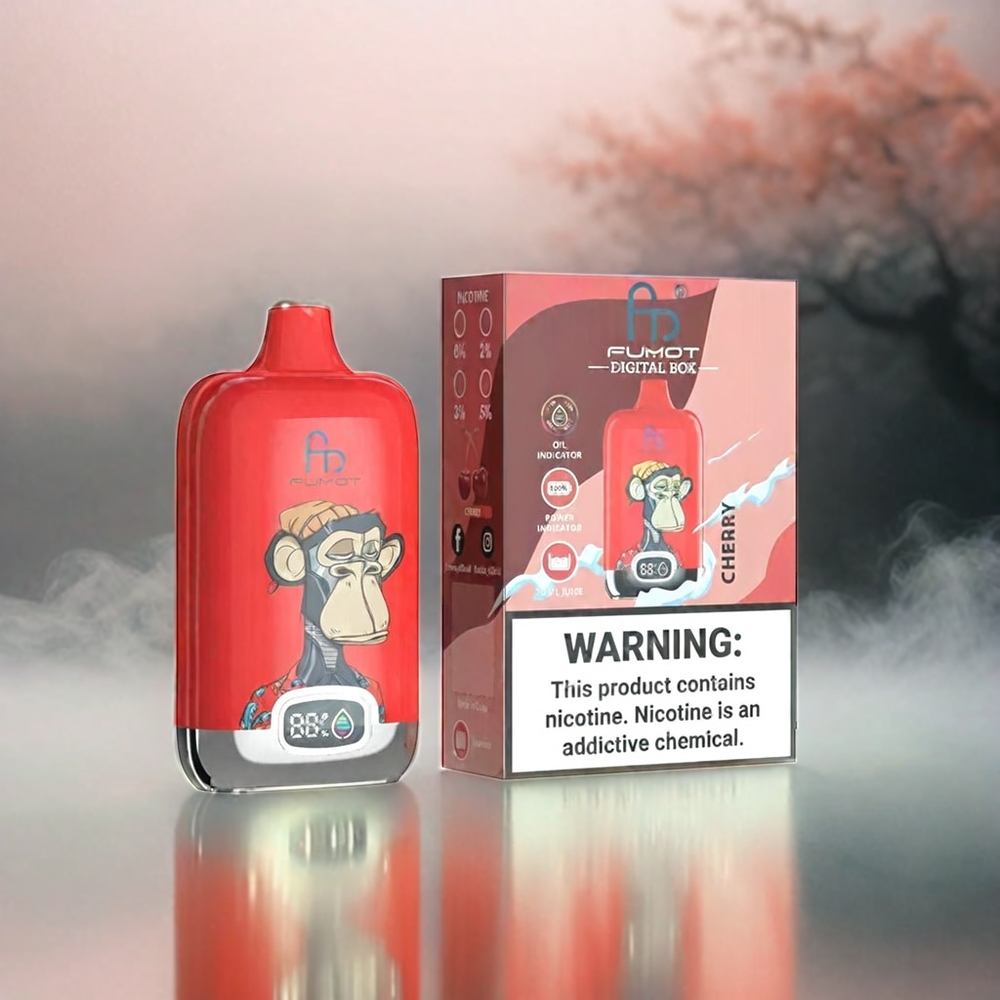 Fumot Tornado Digital Box 12000 Puffs Cherry Schweiz Großhandel mit 20ml E-Liquid, 550mAh Akku und Mesh Coil