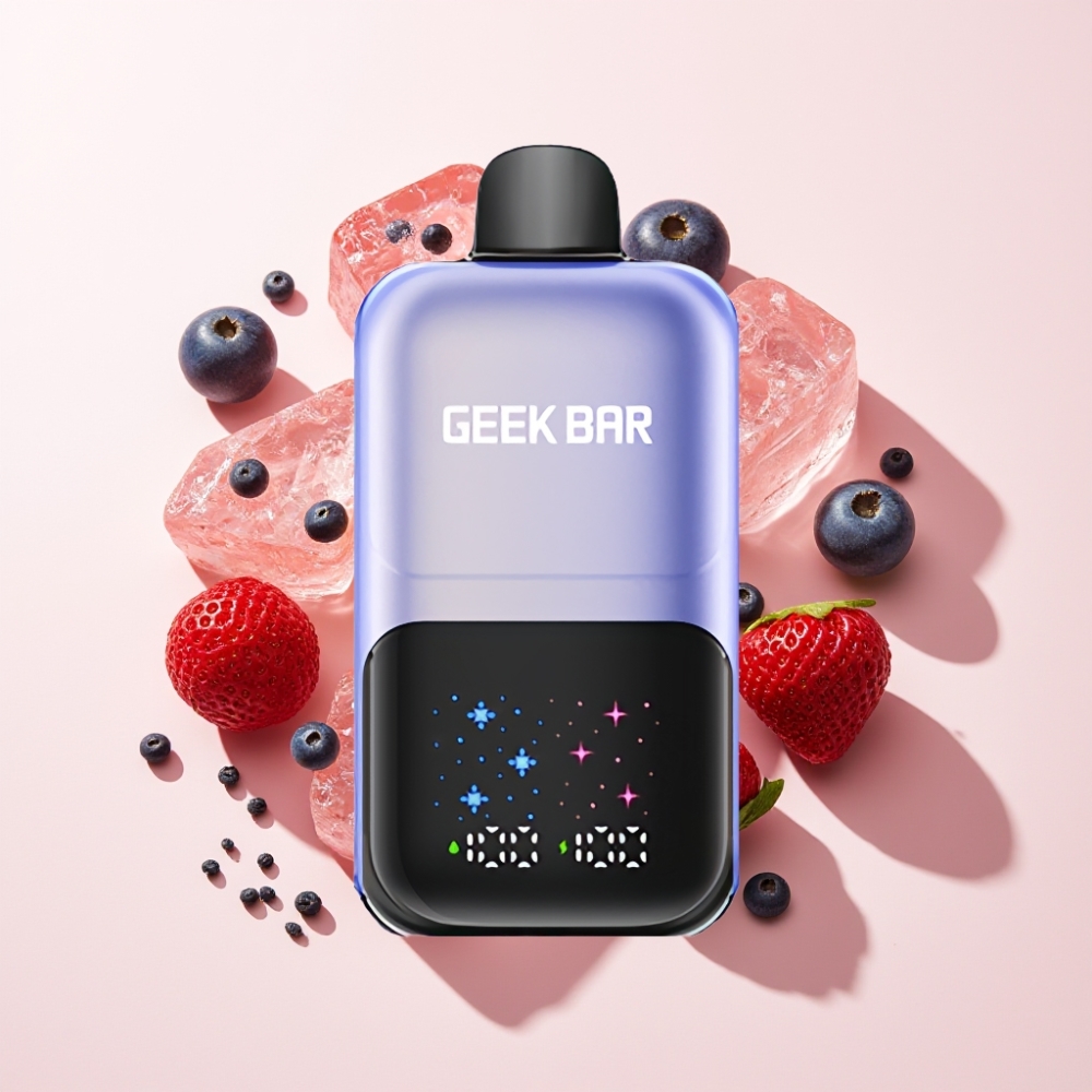 GEEKBAR 2GO 20ml 50000 Züge Zwei Serie Einweg Vape Pen mit interaktivem Großbildschirm, 3-stufig einstellbaren Aromen/Kühle, dualen Tanks – Mixed Berries Ice, Schweiz Großhandel