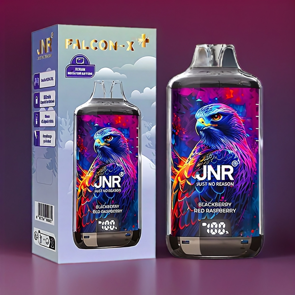 JNR Falcon X⁺ 28000 mit sichtbarem E-Liquid-Stand, 1.2Ω Dual Mesh Coil, 950mAh Akku, Schweiz Großhandel – Brombeere Rote Himbeere
