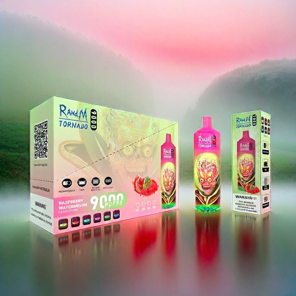 RandM Tornado 9000 Puffs 18mL Mesh Coil RGB Display Raspberry Watermelon Schweiz großhandel