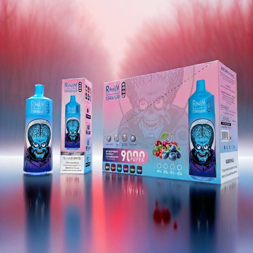 RandM Tornado 9000 Puffs 850 mAh 18 mL Mesh Coil Blueberry Cherry Cranberry Schweiz Großhandel