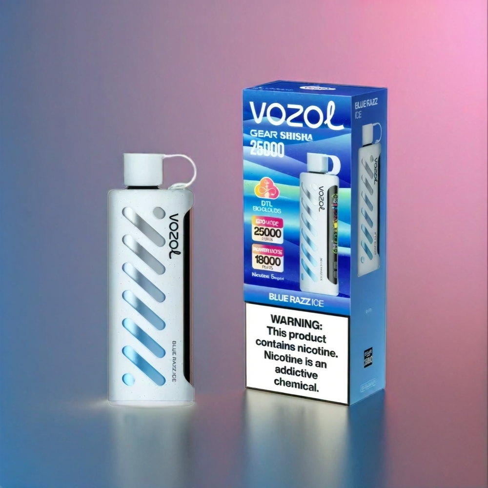 VOZOL Gear Shisha 25000 Puffs Blue Razz Ice – 30 Geschmacksrichtungen, Dual Mesh, 1000mAh, Schweiz Großhandel